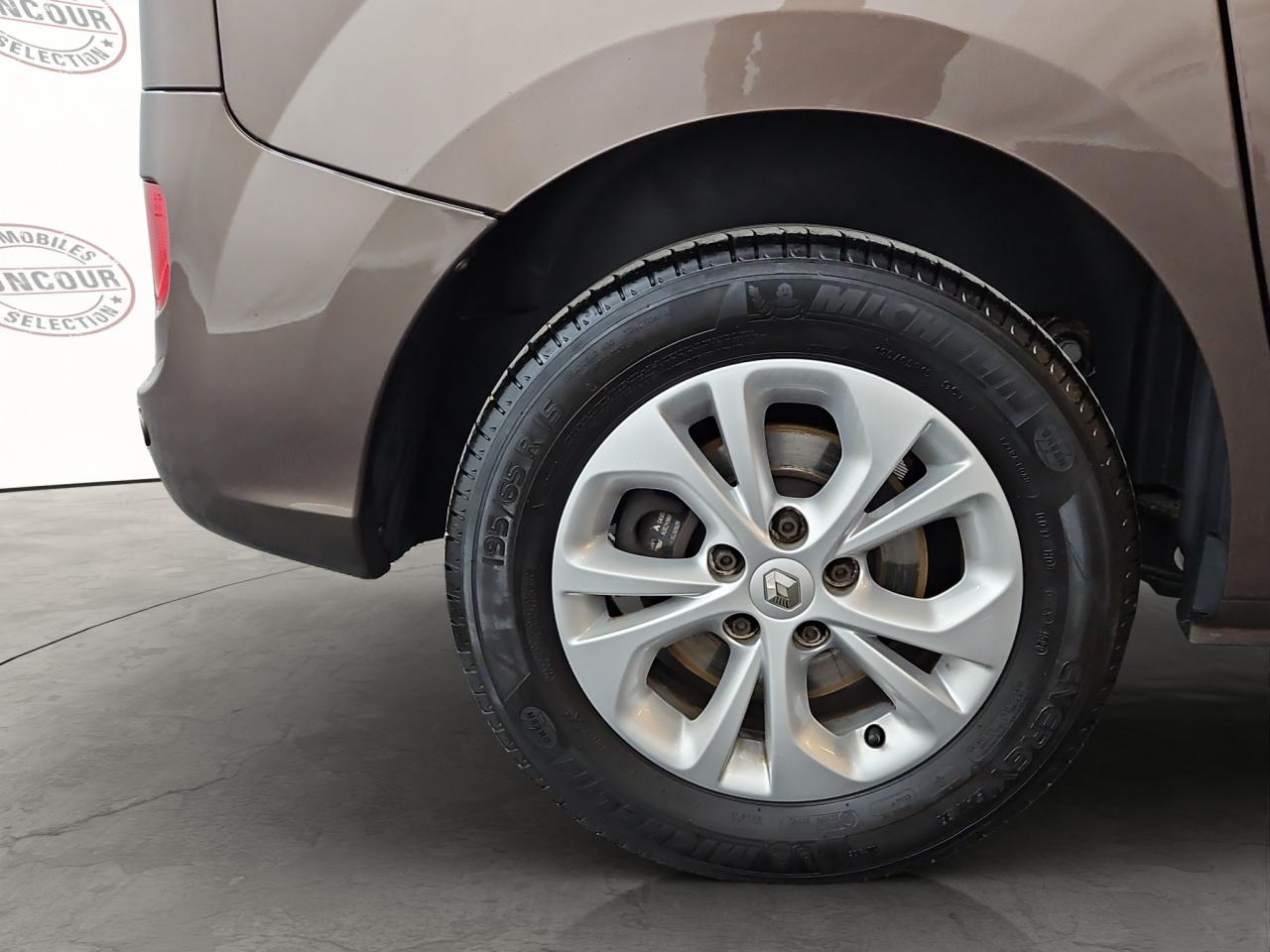 Attelage, jantes alliage 15" Aria, Pack R-Link Evolution (navigation, Bluetooth, réplication smartphone), Pack Climatique (climatisation automatique, essuie-glaces automatiques), Pack Modularité, Pack Famille, radar de recul, projecteurs LED complémentaires, hayon arrière vitré avec lunette chauffante, banquette arrière 1/3-2/3 mise en plancher plat, barres de toit, volant en croûte de cuir, vitres arrière surteintées, rétroviseurs rabattables et dégivrants, régulateur/limiteur de vitesse, ESP + Extended Grip.